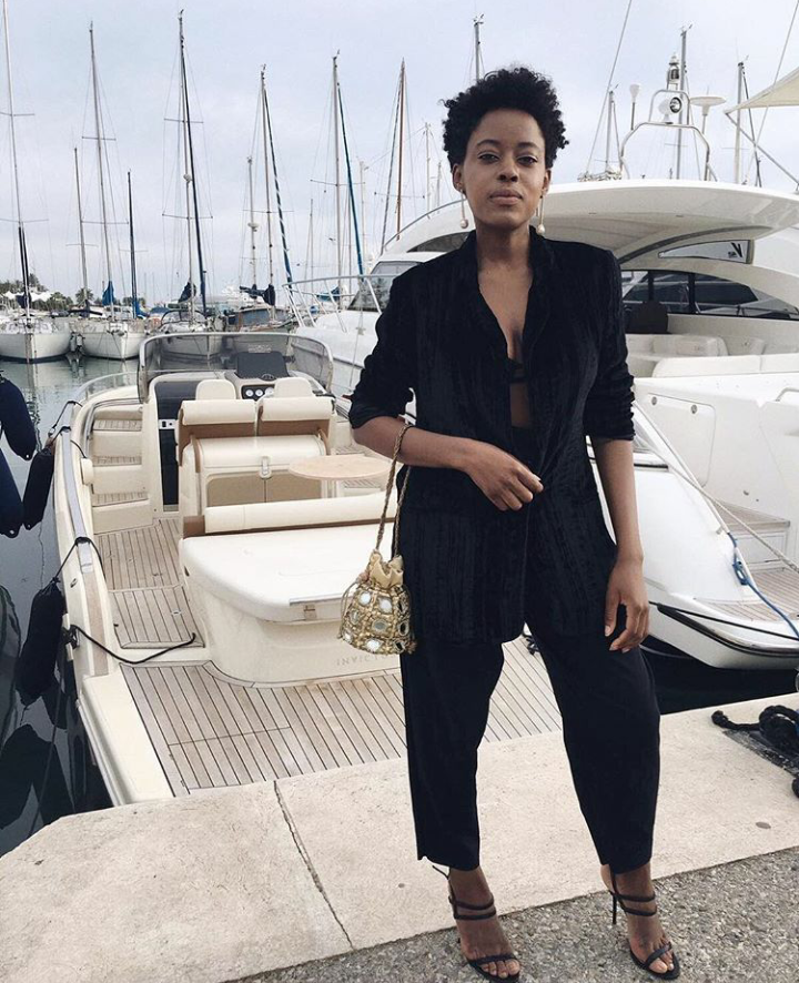 1. That time she was fierce in all black and the cutest gold accessory; with the sea and luxury boats as a backdrop, you know, like one does.